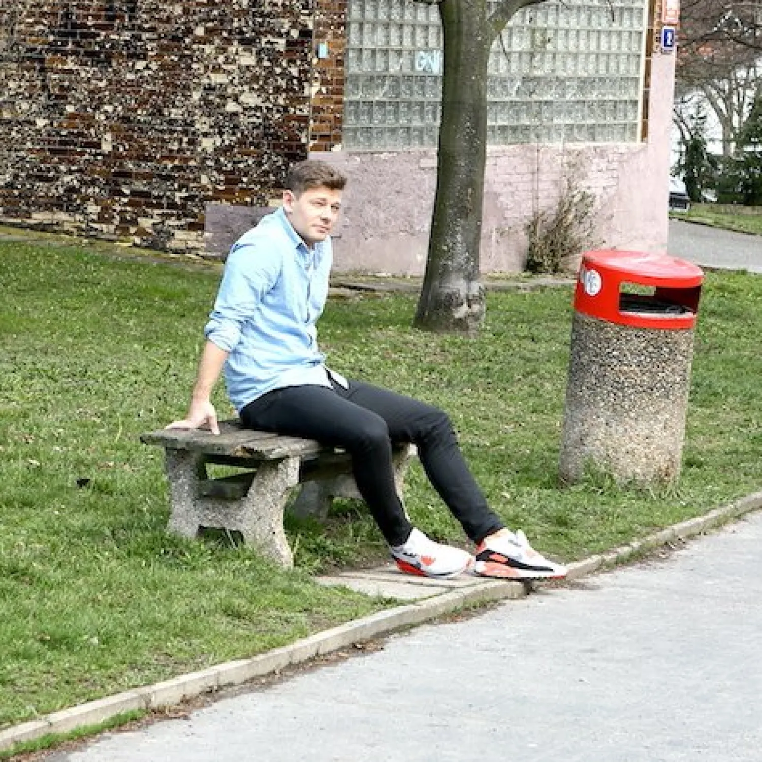 Blond babe og muskuløs mann på jakt etter en annen mann i en trekant for å nyte sammen hot utendørs bisex orgie